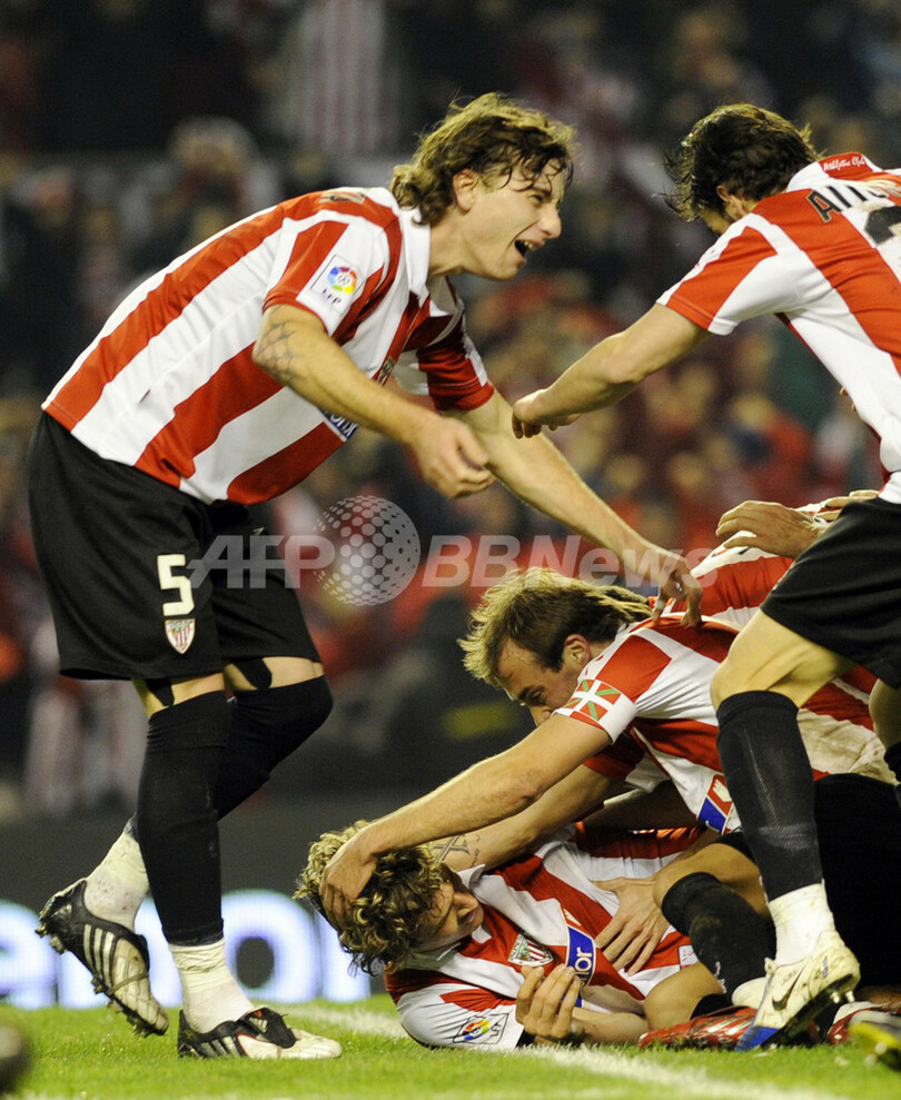 23度の国王杯を優勝を誇るアスレティック・ビルバオは、第2戦前半の45分間だけで3点を奪い、決勝進出を果たした。5月13日にバレンシア(Valencia)のメスタージャ・スタジアム(Mestalla stadium)で行われる決勝戦でアスレティック・ビルバオは、1983-84シーズンの同大会決勝で勝利したFCバルセロナ(FC Barcelona)と対戦する。(c)AFP