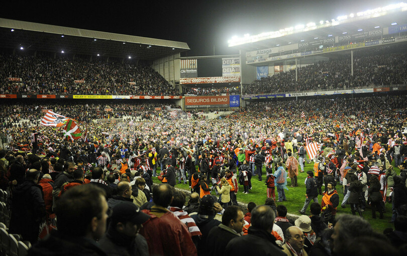 23度の国王杯を優勝を誇るアスレティック・ビルバオは、第2戦前半の45分間だけで3点を奪い、決勝進出を果たした。5月13日にバレンシア(Valencia)のメスタージャ・スタジアム(Mestalla stadium)で行われる決勝戦でアスレティック・ビルバオは、1983-84シーズンの同大会決勝で勝利したFCバルセロナ(FC Barcelona)と対戦する。(c)AFP