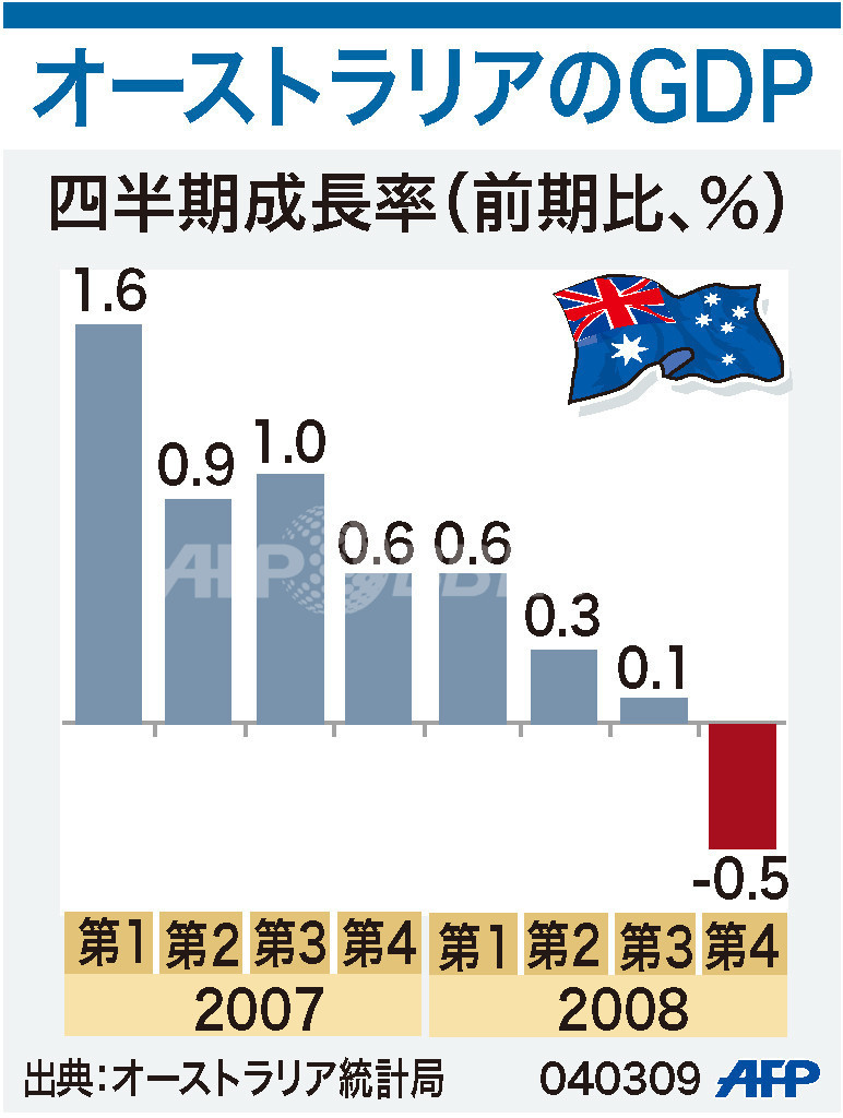 ニュース 政治・経済 図解 【図解】オーストラリアのGDP成長率 2009年3月5日 16:56 発信地:キャンベラ/オーストラリア [ アジア・オセアニア オーストラリア ] このニュースをシェア (c)AFP 【3月5日 AFP】図は、2007年から2008年までの、オーストラリアの四半期ごとのGDP成長率を示したもの。(c)AFP<ニュース解説画像一覧へ> 政治・経済 一覧へ> メディア・報道関係・法人の方向け 写真・動画 購入のお問合せ>