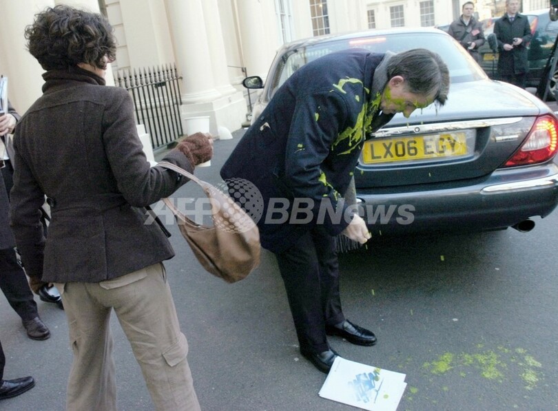 【3月6日 AFP】英ロンドンで6日、ピーター・マンデルソン(Peter Mandelson)民間企業・規制改革担当相がヒースロー(Heathrow)空港の拡張工事に反対する活動家の女性に、緑色のカスタードクリームをかけられる事件があった。