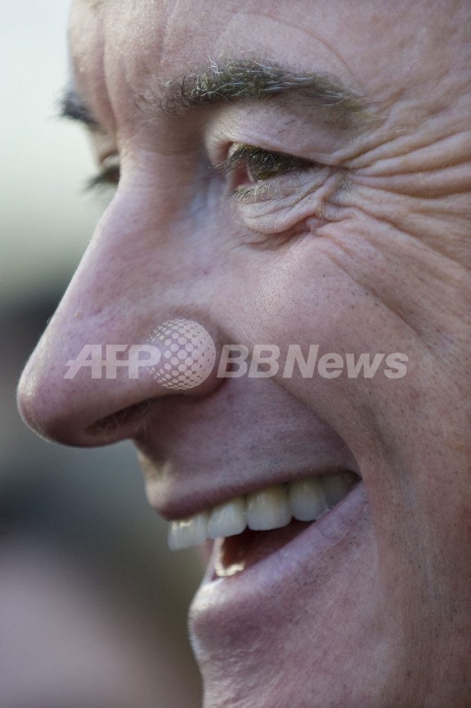 一方、欧州連合(EU)の通商担当委員から前年、政権閣僚に返り咲いたマンデルソン担当相も、これに負けじと、クリームが付着したコートを脱いだ姿でテレビに出演。事件を「たかが若者の抗議運動だ」と切り捨てた。「彼女は緑色のスープのようなものを私の顔に浴びせようと必死で、何に抗議しているのか、私に言うことを忘れてしまったようだ。ともかく、ペンキじゃなくて助かった。こうして無事でいられたからね」(c)AFP