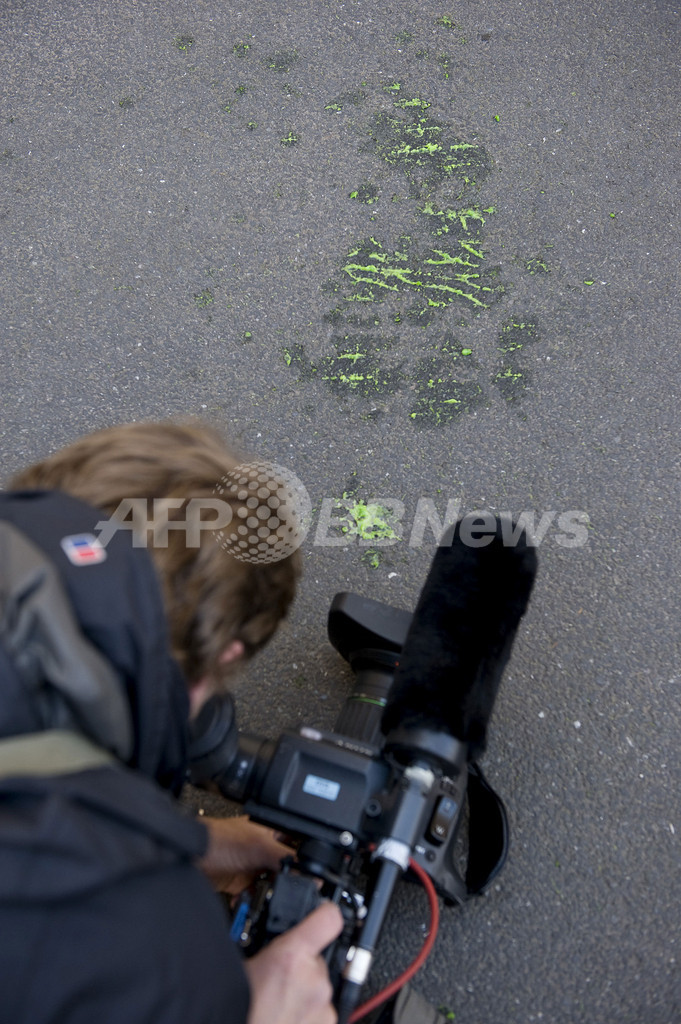 一方、欧州連合(EU)の通商担当委員から前年、政権閣僚に返り咲いたマンデルソン担当相も、これに負けじと、クリームが付着したコートを脱いだ姿でテレビに出演。事件を「たかが若者の抗議運動だ」と切り捨てた。「彼女は緑色のスープのようなものを私の顔に浴びせようと必死で、何に抗議しているのか、私に言うことを忘れてしまったようだ。ともかく、ペンキじゃなくて助かった。こうして無事でいられたからね」(c)AFP
