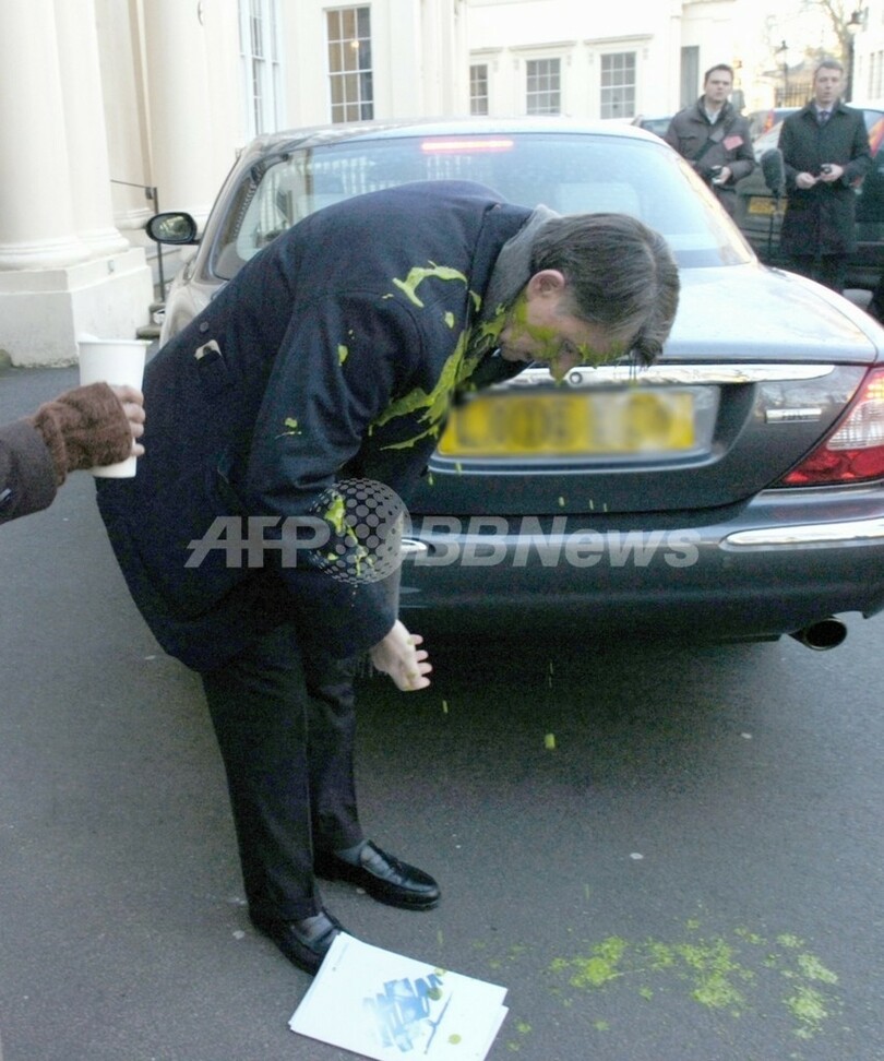 【3月6日 AFP】英ロンドンで6日、ピーター・マンデルソン(Peter Mandelson)民間企業・規制改革担当相がヒースロー(Heathrow)空港の拡張工事に反対する活動家の女性に、緑色のカスタードクリームをかけられる事件があった。