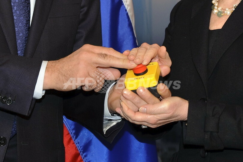 ニュース専門サイトRBC.ruに掲載された記事には、「米国の友好的姿勢が、小さな面白い出来事によってひっくり返されてしまったが、テレビカメラの前でクリントン長官とラブロフ外相はボタンを押さないわけにはいかなかった」と書かれている。(c)AFP