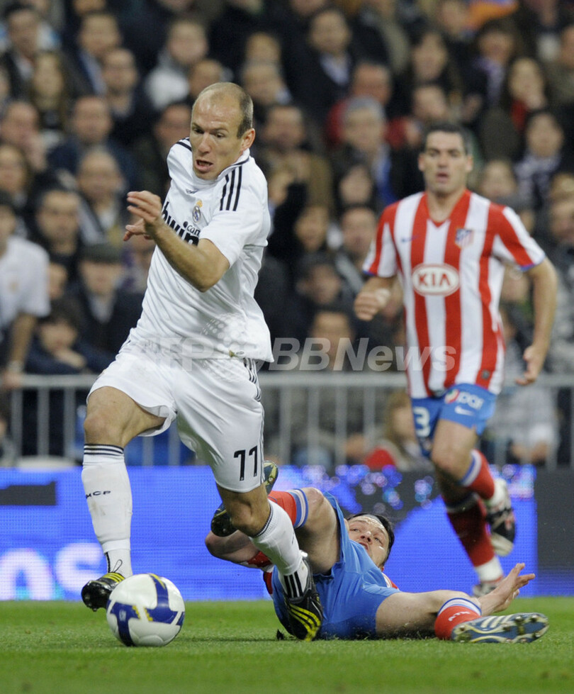スポーツ サッカー レアル・マドリード アトレティコ・マドリードと引き分けて連勝止まる 2009年3月8日 7:20 発信地:マドリード/スペイン [ ヨーロッパ スペイン ] このニュースをシェア ‹ › ❮ 13/20 ❯ アトレティコ・マドリードのトマス・ウイファルシ(%%Tomas Ujfalusi%%)のスライディングタックルを振り切るレアル・マドリードのアリエン・ロッベン(%%Arjen Robben%%)。(2009年3月7日撮影)(c)AFP/PHILIPPE DESMAZES 画像作成中 ! 【3月8日 AFP】08-09スペイン1部リーグ・第26節、レアル・マドリード(Real Madrid)対アトレティコ・マドリード(Atletico de Madrid)。試合は1-1の引き分けに終わり、レアル・マドリードの連勝は10でストップした。(c)AFP サッカー 一覧へ> メディア・報道関係・法人の方向け 写真・動画 購入のお問合せ>