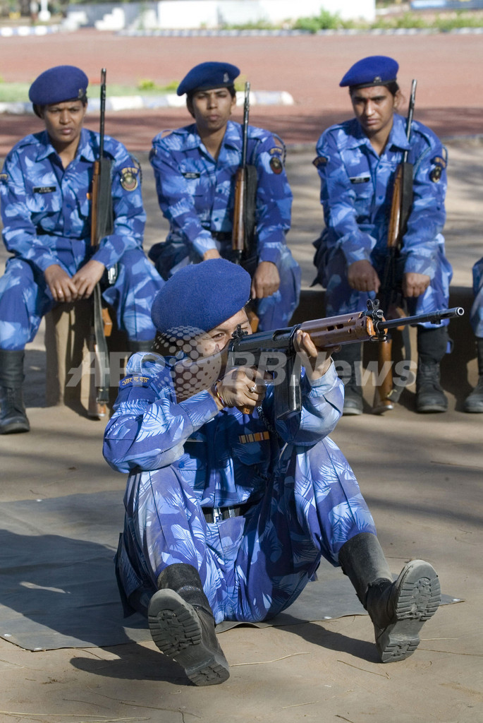 この特殊部隊は準軍組織・インド中央警察予備隊(Indian Central Reserve Police Force、CRPF)に所属する特殊部隊で、地域社会の暴動、騒乱、テロ行為の鎮圧や自然災害発生時の対応などを任務としている(2009年3月7日撮影)(c)AFP/Sam PANTHAKY