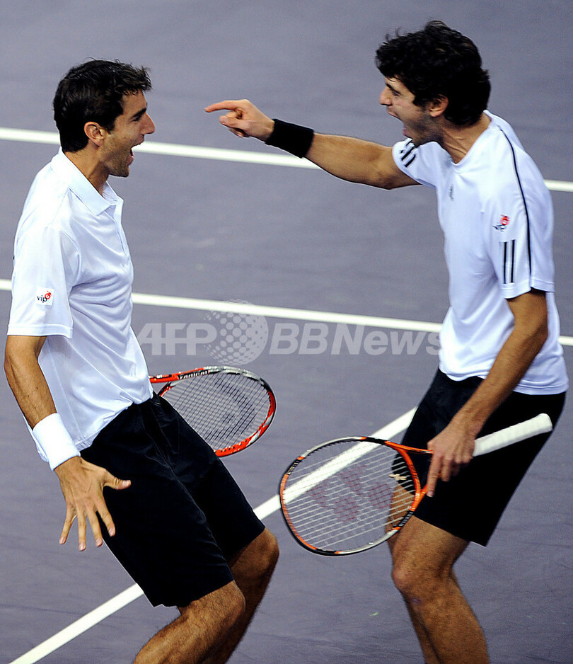 【3月8日 AFP】男子テニス国別対抗戦、デビスカップ(2009 Davis Cup)ワールドグループ1回戦、クロアチア対チリ。2日目はダブルスが行われ、クロアチアはマリオ・アンチッチ(Mario Ancic)/マリン・チリッチ(Marin Cilic)組が、チリのニコラス・マシュー(Nicolas Massu)/ポール・カプトヴィル(Paul Capdeville)組をセットカウント3-1(6-3、6-3、4-6、6-4)で下し、3連勝で準々決勝進出を決めた。(c)AFP