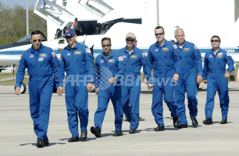【3月9日 AFP】(写真追加)11日に打ち上げ予定の米スペースシャトル「ディスカバリー(Discovery)」に搭乗する若田光一(Koichi Wakata)さんら、乗組員7人が8日、フロリダ(Florida)州ケネディ宇宙センター(Kennedy Space Center)に到着し、記者会見を行った。