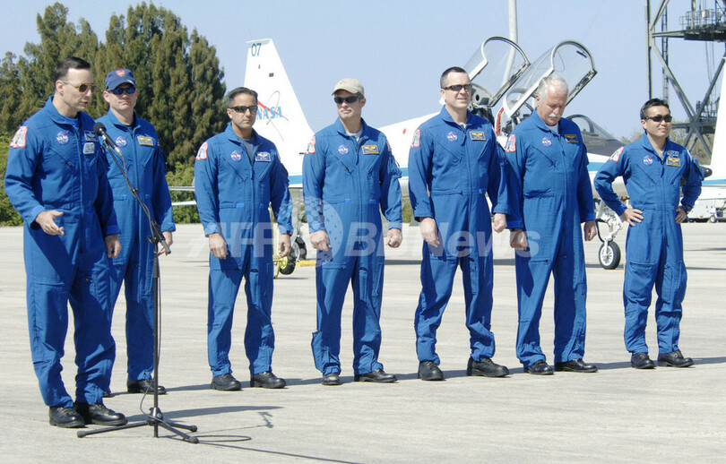 【3月9日 AFP】(写真追加)11日に打ち上げ予定の米スペースシャトル「ディスカバリー(Discovery)」に搭乗する若田光一(Koichi Wakata)さんら、乗組員7人が8日、フロリダ(Florida)州ケネディ宇宙センター(Kennedy Space Center)に到着し、記者会見を行った。