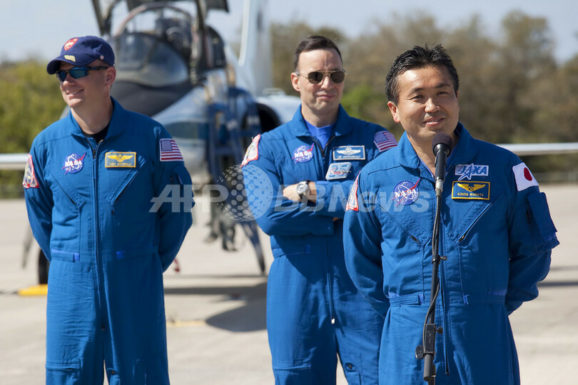 【3月9日 AFP】(写真追加)11日に打ち上げ予定の米スペースシャトル「ディスカバリー(Discovery)」に搭乗する若田光一(Koichi Wakata)さんら、乗組員7人が8日、フロリダ(Florida)州ケネディ宇宙センター(Kennedy Space Center)に到着し、記者会見を行った。