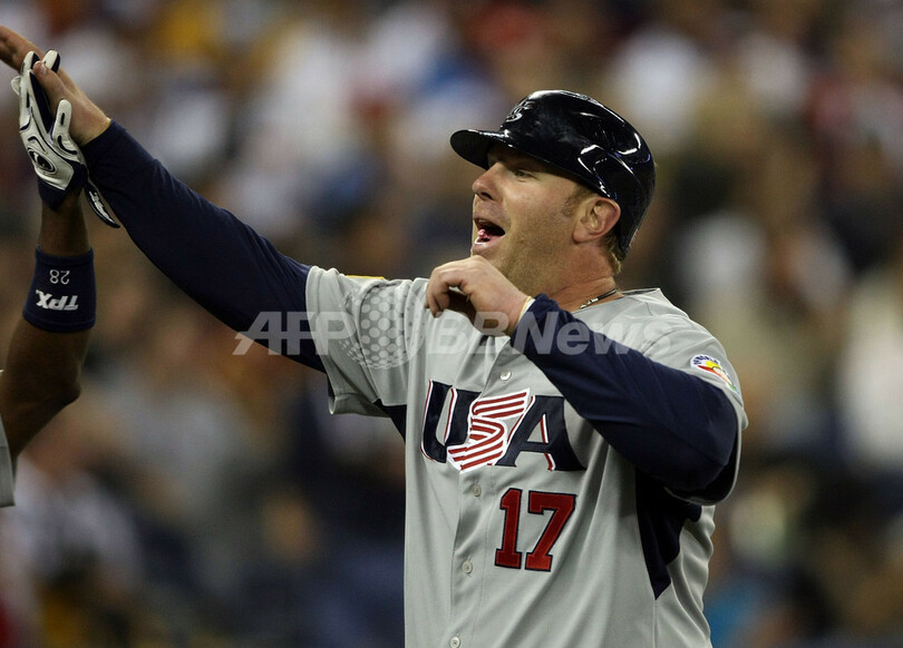 ベネズエラの計7人の投手から米国は、ユーキリスやアダム・ダン(Adam Dunn)、ライアン・ブラウン(Ryan Braun)の本塁打を含む16安打を放ち、14日から始まる2次ラウンドへの切符を手にした。(c)AFP/Jim Slater