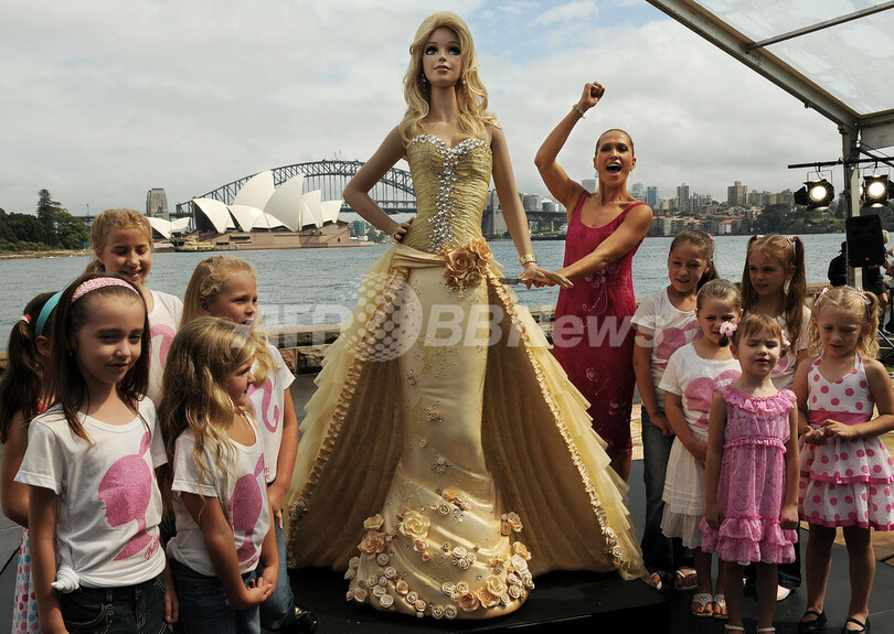 【3月9日 AFP】(写真追加)オーストラリアのシドニー(Sydney)で9日、米玩具メーカー、マテル(Mattel)の世界一有名な人形「バービー(Barbie)」の生誕50周年を記念して、全長2.1メートル、重量1200キロのバービー型ケーキが作られた。このケーキはバービー50周年記念限定モデルを元に作られ、ゴールドのアイシングとシルク、2000個のスワロフスキーを使って装飾されている。(c)AFP