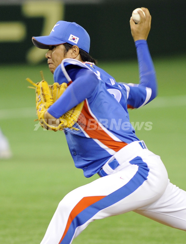 4回に金泰均(Kim Tae-Kyun、キム・テギュン)の適時打で決勝点を挙げ韓国は、6安打を放った日本を4安打で下した。(c)AFP/Shigemi Sato
