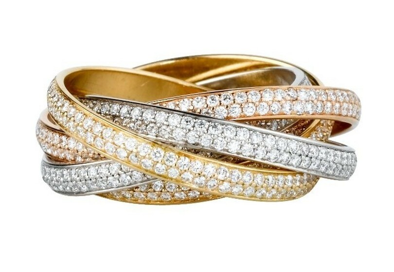 愛を表すピンクゴールド、友情を表すイエローゴールド、忠誠を表すホワイトゴールド。3種の異なるゴールドリングが互いに絡み合う同シリーズが誕生したのは1925年。個人の内なるエッセンス(=愛・友情・忠誠)が凝縮された「トリニティ」が、身につける女性の唯一無二の“個”の証として、現代女性と共に輝く。