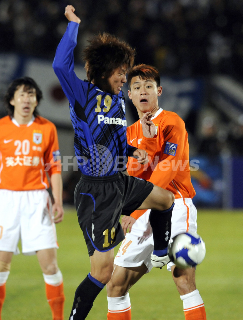 スポーツ サッカー ガンバ大阪 山東魯能泰山に快勝、アジア・チャンピオンズリーグ 2009年3月10日 21:50 発信地:大阪 [ アジア・オセアニア 大阪 ] このニュースをシェア ‹ › ❮ 4/9 ❯ サッカーAFCチャンピオンズリーグ2009・1次リーグF組、対山東魯能泰山戦で吕征(%%Lu Zheng%%、ル・チェン)とボールを競るガンバ大阪の下平匠(%%Takumi Shimohira%%)。(2009年3月10日撮影)(c)AFP/Yoshikazu TSUNO 画像作成中 ! 【3月10日 AFP】(写真追加)サッカーAFCチャンピオンズリーグ2009(AFC Champions League 2009)1次リーグF組、ガンバ大阪(Gamba Osaka)対山東魯能泰山(Shandong Leung Taishan、中国)。試合はガンバ大阪が3-0で勝利した。(c)AFP サッカー 一覧へ> メディア・報道関係・法人の方向け 写真・動画 購入のお問合せ>