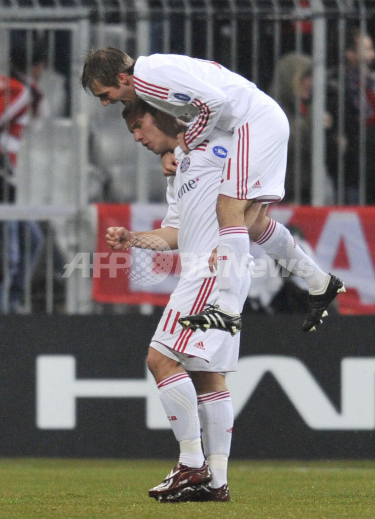 【3月11日 AFP】(写真追加、記事更新)サッカー欧州チャンピオンズリーグ2008-09(UEFA Champions League 2008-09)決勝トーナメント1回戦、バイエルン・ミュンヘン(Bayern Munich)対スポルティング・リスボン(Sporting Lisbon)2回戦。試合はルーカス・ポドルスキー(Lukas Podolski)が2得点を記録するなど、バイエルン・ミュンヘンが7-1で快勝し、2試合合計12-1で準々決勝に進出した。