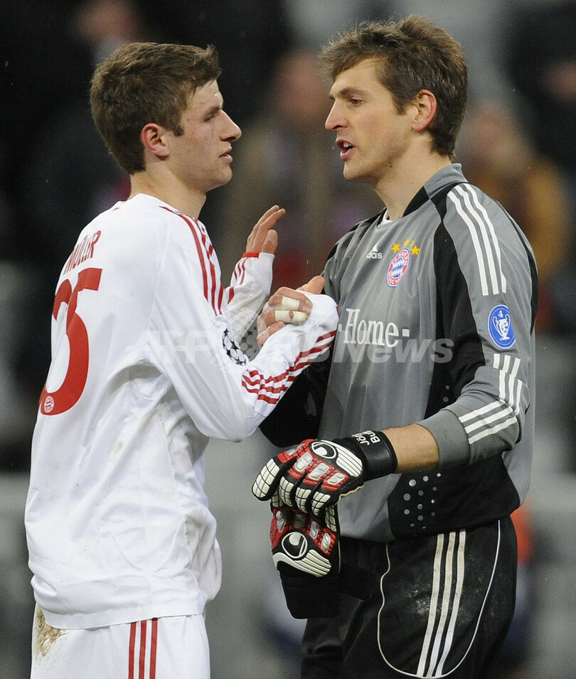 【3月11日 AFP】(写真追加、記事更新)サッカー欧州チャンピオンズリーグ2008-09(UEFA Champions League 2008-09)決勝トーナメント1回戦、バイエルン・ミュンヘン(Bayern Munich)対スポルティング・リスボン(Sporting Lisbon)2回戦。試合はルーカス・ポドルスキー(Lukas Podolski)が2得点を記録するなど、バイエルン・ミュンヘンが7-1で快勝し、2試合合計12-1で準々決勝に進出した。