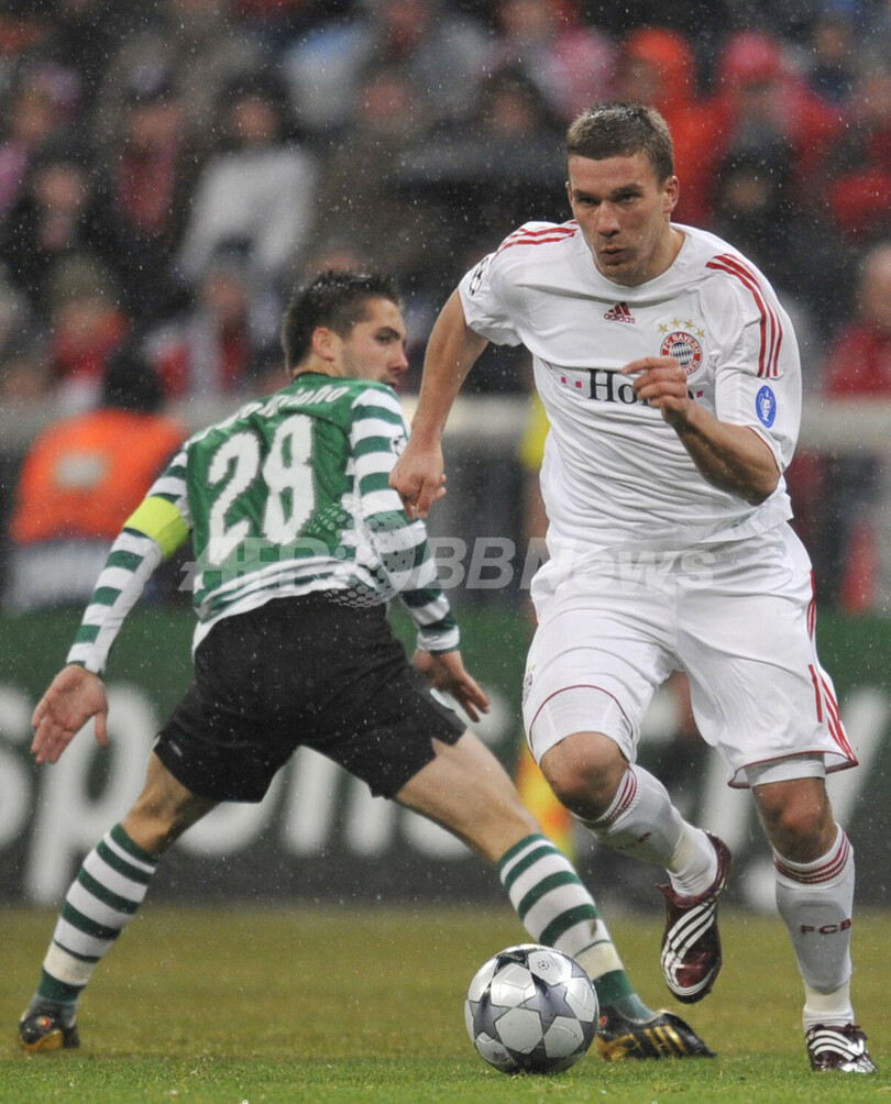 【3月11日 AFP】(写真追加、記事更新)サッカー欧州チャンピオンズリーグ2008-09(UEFA Champions League 2008-09)決勝トーナメント1回戦、バイエルン・ミュンヘン(Bayern Munich)対スポルティング・リスボン(Sporting Lisbon)2回戦。試合はルーカス・ポドルスキー(Lukas Podolski)が2得点を記録するなど、バイエルン・ミュンヘンが7-1で快勝し、2試合合計12-1で準々決勝に進出した。
