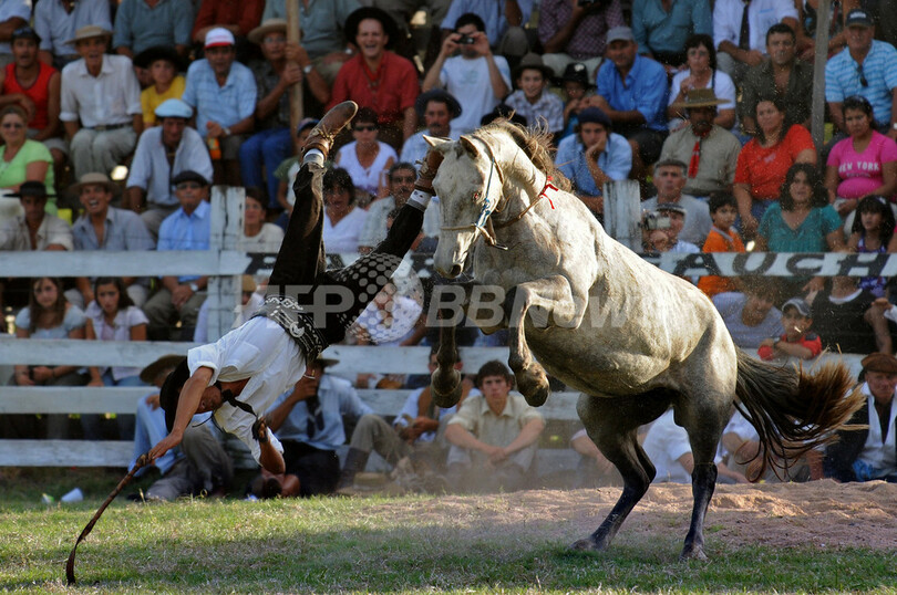ニュース ライフ ウルグアイで伝統のロデオ大会 2009年3月11日 9:37 発信地:タクアレンボ/ウルグアイ [ 中南米 ウルグアイ ] このニュースをシェア ‹ › ❮ 12/12 ❯ ウルグアイ・タクアレンボ(Tacuarembo)で6日、伝統のロデオ大会が開催された(2009年3月6日撮影)。(c)AFP/Pablo Porciuncula 画像作成中 ! 【3月11日 AFP】ウルグアイ・タクアレンボ(Tacuarembo)で6日、伝統のロデオ大会が開催された。(c)AFP ライフ 一覧へ> メディア・報道関係・法人の方向け 写真・動画 購入のお問合せ>