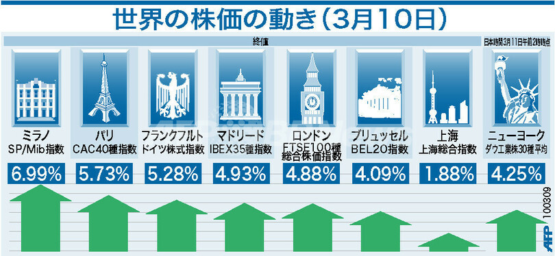 ニュース 政治・経済 図解 【図解】10日の世界の株価 2009年3月11日 10:57 発信地:その他 [ 例外 その他 ] このニュースをシェア (c)AFP 【3月11日 AFP】図は10日の世界各地の株価を示したもの(c)AFP<ニュース解説画像一覧へ> 政治・経済 一覧へ> メディア・報道関係・法人の方向け 写真・動画 購入のお問合せ>