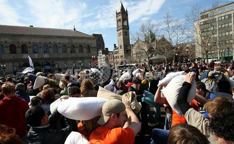市当局の我慢が限界に達したのは前月。バレンタイン・デーに約1500-3000人が市中心部の広場とその周辺でピローファイトを行い、枕から飛び出した羽毛があたり一帯にひろがった。