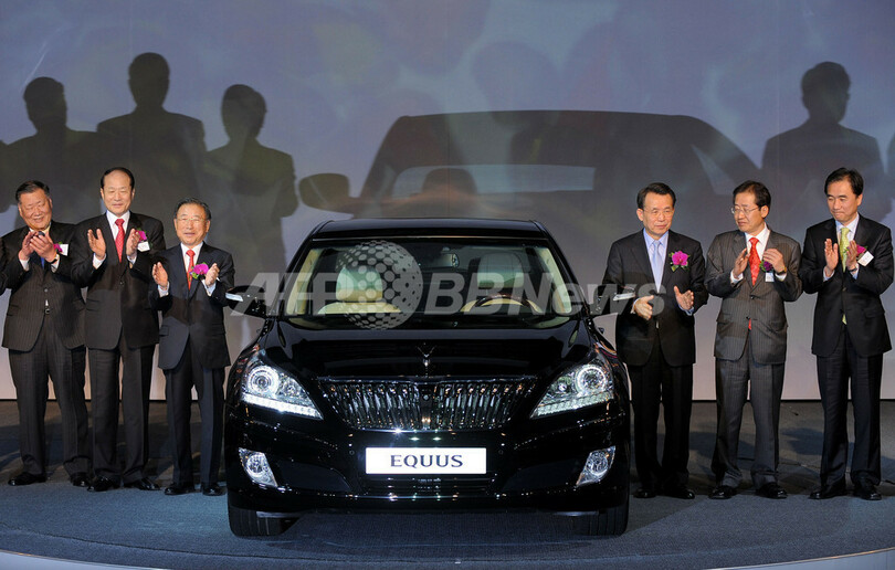 ニュース 政治・経済 現代自動車、新型「エクウス」を発表 2009年3月12日 19:17 発信地:ソウル/韓国 [ 韓国・北朝鮮 韓国 ] このニュースをシェア ‹ › ❮ 2/4 ❯ 韓国・ソウル(Seoul)で、現代自動車(Hyundai Motor)の高級セダンの新型「エクウス(Equus)」の発表会に出席した同会社の鄭夢九(チョン・モング、Chung Mong-Koo)会長(左)と韓国の韓昇洙首相(ハン・スンス、Han Seung-Soo、右から3人目)。(c)AFP/JUNG YEON-JE 画像作成中 ! 【3月12日 AFP】韓国の自動車大手現代自動車(Hyundai Motor)はソウル(Seoul)で11日、高級セダンの新型「エクウス(Equus)」を発表した。3.8リットルエンジンと4.6リットルエンジンを搭載している。国内販売予定価格は6370万-1億520万韓国ウォン (約410万-680万円)。「エクウス」は中国、アフリカ、中東でも販売される予定。(c)AFP 政治・経済 一覧へ> メディア・報道関係・法人の方向け 写真・動画 購入のお問合せ>