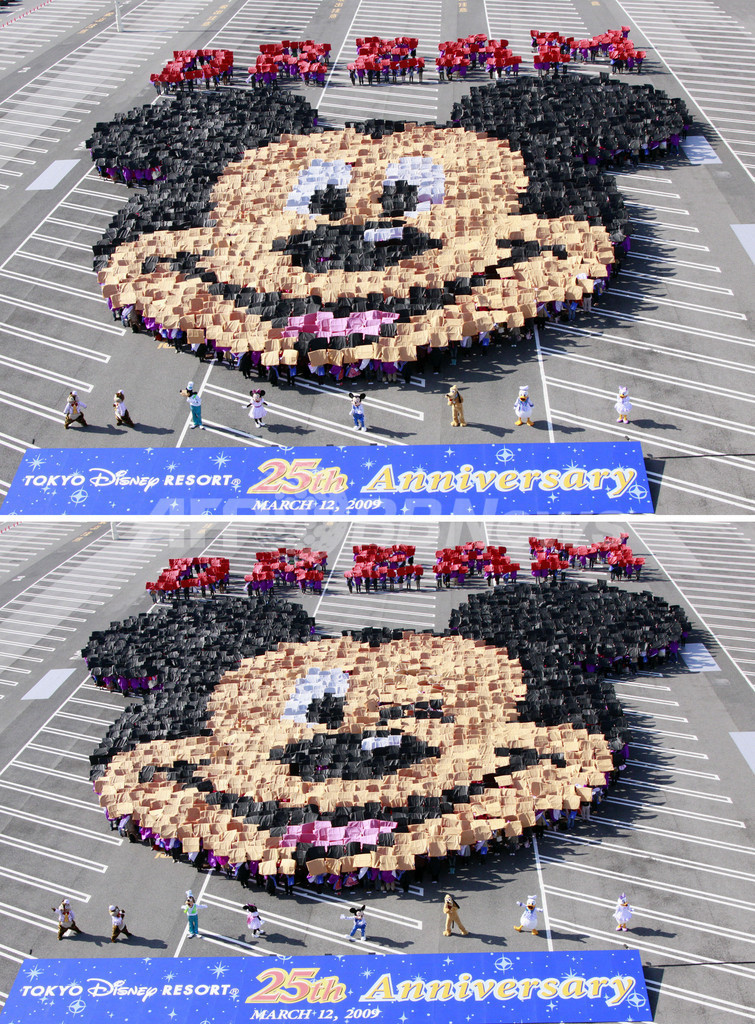 ニュース ライフ 2500人で人文字ミッキー、ディズニーランド開園25周年を記念 2009年3月12日 14:30 発信地:千葉 [ アジア・オセアニア 千葉 ] このニュースをシェア ‹ › ❮ 2/6 ❯ 千葉県浦安市の東京ディズニーランド(Tokyo Disneyland、TDL)の駐車場で、開園25周年を記念して行われたミッキーマウスの顔を人文字で描くイベント。2500人が参加した。ミッキーマウスを始めとしたディズニーのキャラクターも登場し、参加者らに声援を送った(2009年3月12日撮影)。(c)AFP/Yoshikazu TSUNO 画像作成中 ! 【3月12日 AFP】千葉県浦安市の東京ディズニーランド(Tokyo Disneyland、TDL)の駐車場で12日、開園25周年を記念して2500人が参加してミッキーマウスの顔を人文字で描くイベントが行われた。イベントにはミッキーマウスを始めとしたディズニーのキャラクターも登場し、参加者らに声援を送った。(c)AFP ライフ 一覧へ> メディア・報道関係・法人の方向け 写真・動画 購入のお問合せ>