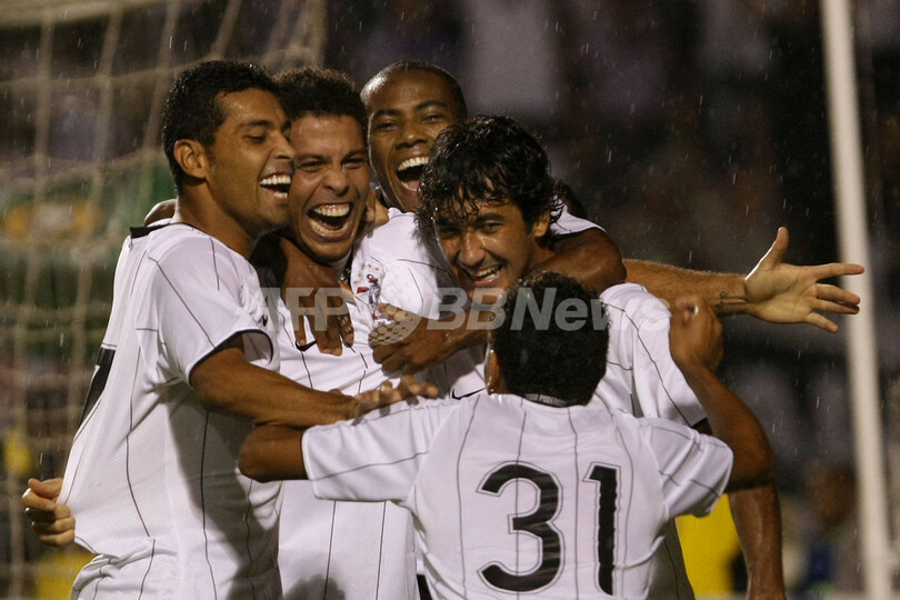 スポーツ サッカー ロナウド サンカエターノ戦で決勝点、サンパウロ州選手権 2009年3月12日 16:52 発信地:サンパウロ/ブラジル [ 中南米 ブラジル ] このニュースをシェア ‹ › ❮ 8/10 ❯ ブラジル・カンピオナート・パウリスタ2009(サンパウロ州選手権)1部第13節、コリンチャンス(%%Corinthians%%)対サンカエターノ (%%Sao Caetano%%)。試合はロナウドの決勝点によりコリンチャンスが2-1で勝利。写真は後半5分に得点を決めてチームメイトに祝福されるコリンチャンスのロナウド(%%Ronaldo%%、左2)。(2009年3月11日撮影)(c)AFP/MAURICIO LIMA 画像作成中 ! 【3月12日 AFP】ブラジル・カンピオナート・パウリスタ2009(サンパウロ州選手権)1部第13節、コリンチャンス(Corinthians)対サンカエターノ (Sao Caetano)。試合はロナウド(Ronaldo)が決勝点を挙げたコリンチャンスが2-1で勝利を収めた。(c)AFP サッカー 一覧へ> メディア・報道関係・法人の方向け 写真・動画 購入のお問合せ>