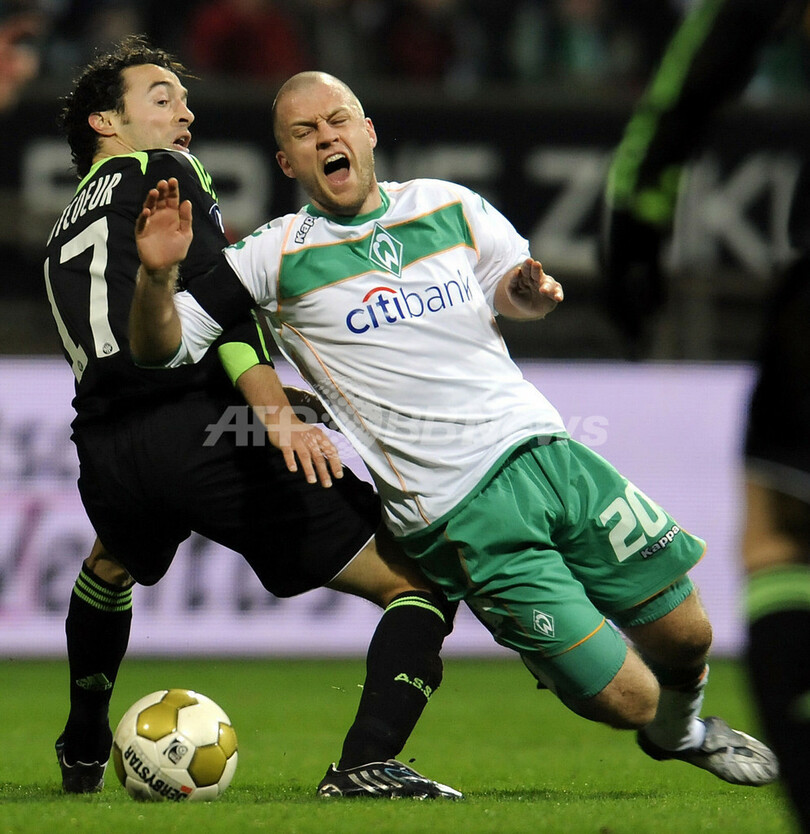 スポーツ サッカー ヴェルダー・ブレーメン ホームでサンテティエンヌを下す 2009年3月13日 9:04 発信地:ドイツ/ドイツ [ ヨーロッパ ドイツ ] このニュースをシェア ‹ › ❮ 4/6 ❯ サンテティエンヌのヨハン・ホートクール(%%Yohan Hautcoeur%%、左)のチェックを受け、バランスを崩すヴェルダー・ブレーメンのダニエル・イェンセン(%%Daniel Jensen%%)。(2009年3月12日撮影)(c)AFP/DDP/DAVID HECKER 画像作成中 ! 【3月13日 AFP】サッカーUEFA杯2008-09(UEFA Cup 2008-09)決勝トーナメント2回戦、ヴェルダー・ブレーメン(Werder Bremen)対サンテティエンヌ(AS Saint-Etienne)第1戦。試合は、ヴェルダー・ブレーメンが1-0で勝利した。(c)AFP サッカー 一覧へ> メディア・報道関係・法人の方向け 写真・動画 購入のお問合せ>