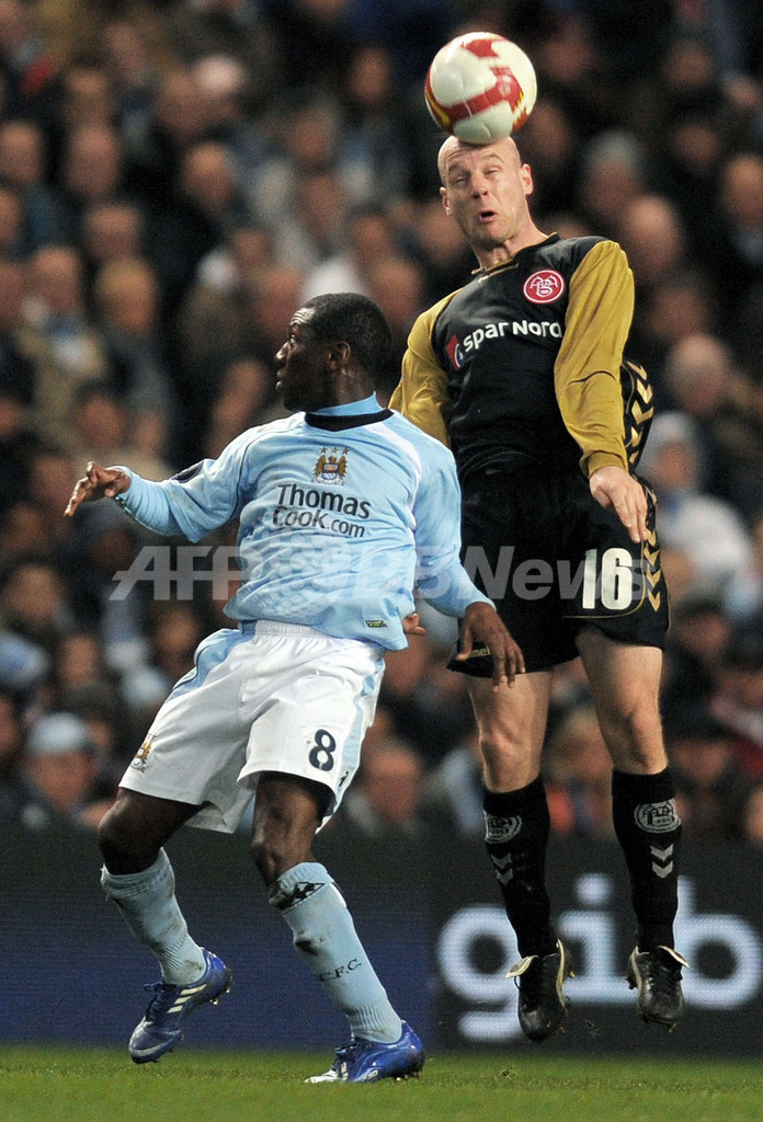 【3月13日 AFP】サッカーUEFA杯2008-09(UEFA Cup 2008-09)決勝トーナメント2回戦、マンチェスター・シティ(Manchester City)対オールボーBK(Aalborg BK)第1戦。試合はマンチェスター・シティが2-0でオールボーBKに先勝した。