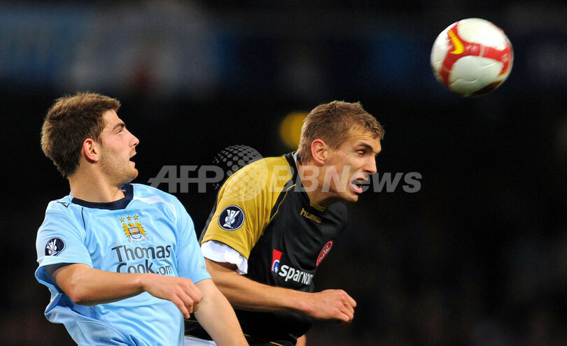 【3月13日 AFP】サッカーUEFA杯2008-09(UEFA Cup 2008-09)決勝トーナメント2回戦、マンチェスター・シティ(Manchester City)対オールボーBK(Aalborg BK)第1戦。試合はマンチェスター・シティが2-0でオールボーBKに先勝した。