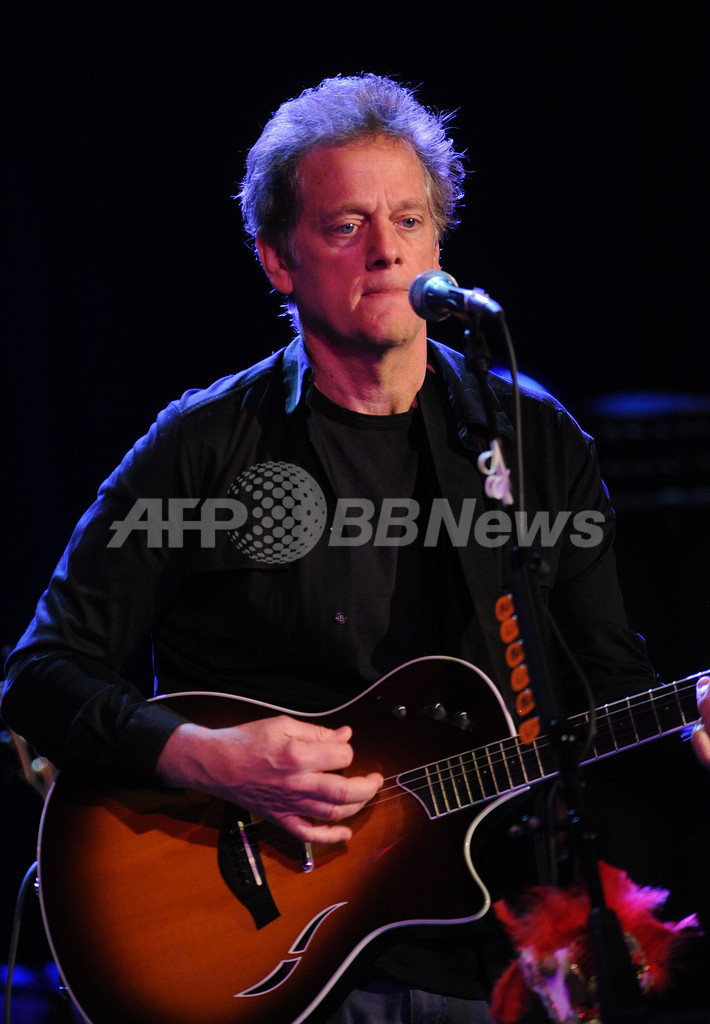 米俳優ケヴィン・ベーコン(Kevin Bacon)と兄のマイケル・ベーコン(Michael Bacon)からなるバンド、ベーコン・ブラザーズ(Bacon Brothers)が12日、ニューヨーク(New York)のハードロックカフェ(Hard Rock Cafe)でパフォーマンスを披露した。写真はマイケル(2009年3月12日撮影)。(c)AFP/Getty Images/Brad Barket