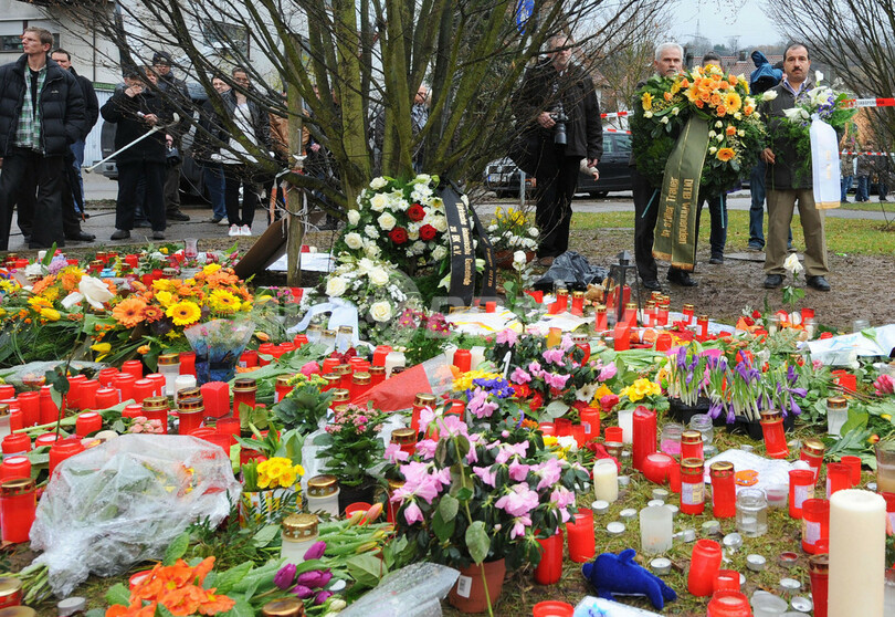 犯行から2日たった13日もウィネンデンは事件の衝撃に襲われたままだ。現場となったアルベルトビレ(Albertville)実科学校前には花が手向けられている。銃撃戦で負傷した警察官2人と、学校で銃弾を受けて負傷したり、窓から飛び降りて骨折した5人の児童はまだ入院している。アンゲラ・メルケル(Angela Merkel)首相の報道官は、21日の追悼式典には首相も参列すると発表した。(c)AFP