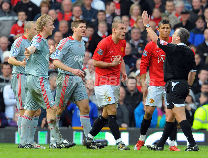 しかし、同28分にネマニャ・ビディッチ(Nemanja Vidic)のミスからフェルナンド・トーレス(Fernando Torres)が得点を挙げ、リバプールが同点に追いついた。その後、前半終了間際にスティーブン・ジェラード(Steven Gerrard)がPKを決めて逆転したリバプールは、後半32分にはファビオ・アウレリオ(Fabio Aurelio)がフリーキック(FK)から得点を決めて追加点を奪い、さらに同ロスタイムには途中出場したアンドレア・ドッセーナ(Andrea Dossena)が得点を奪い、試合を決めた。(c)AFP/Angus MacKinnon