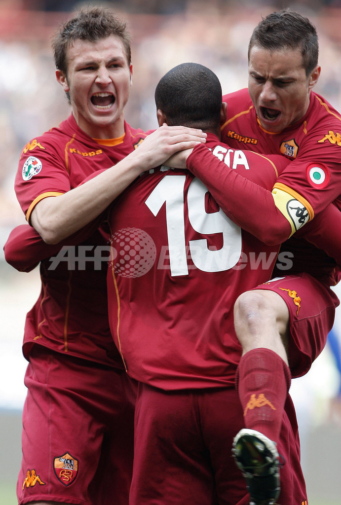 スポーツ サッカー ASローマ アウェーでサンプドリアと引き分ける 2009年3月16日 6:48 発信地:ジェノバ/イタリア [ ヨーロッパ イタリア ] このニュースをシェア ‹ › ❮ 10/10 ❯ 得点を挙げてチームメイトから祝福されるASローマのジュリオ・バプティスタ(%%Julio Baptista%%、中央)。(2009年3月15日撮影)(c)AFP/FABIO MUZZI 画像作成中 ! 【3月16日 AFP】08-09イタリア・セリエA第28節、サンプドリア(Sampdoria)対ASローマ(AS Roma)。試合は2-2の引き分けに終わった。(c)AFP サッカー 一覧へ> メディア・報道関係・法人の方向け 写真・動画 購入のお問合せ>