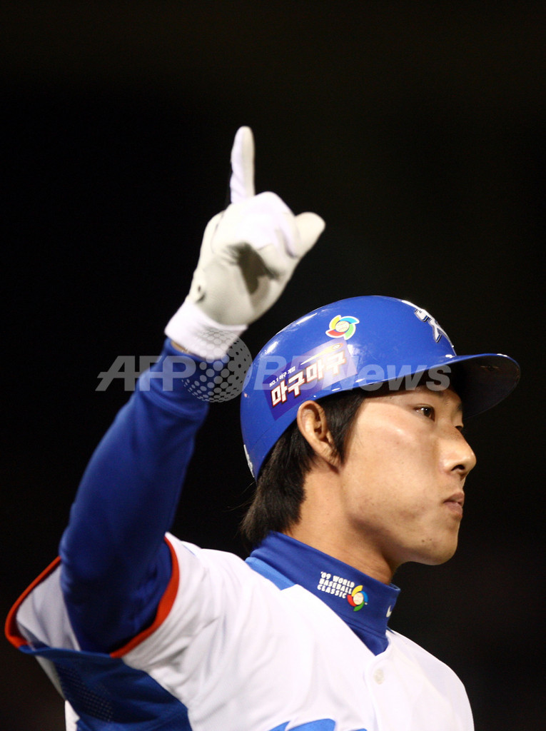 【3月16日 AFP】(写真追加、記事更新)第2回ワールド・ベースボール・クラシック(2009 World Baseball Classic)2次ラウンド1組、韓国対メキシコ。試合は金泰均(Kim Tae-Kyun、キム・テギュン)が1本塁打を含む2安打3打点を記録し、韓国が8-2で勝利した。