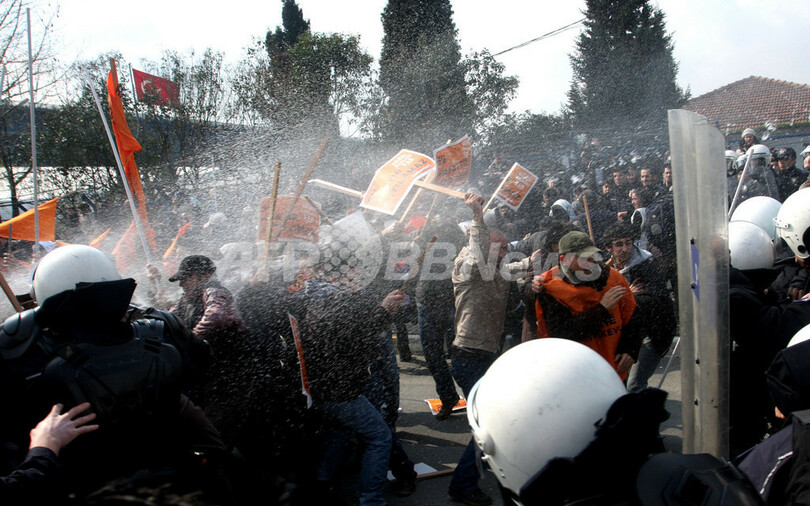 【3月17日 AFP】水資源問題に関する国際会議「第5回世界水フォーラム(World Water Forum)」が開催中のトルコ・イスタンブール(Istanbul)で16日、労働組合や環境活動家らがデモを行った。デモ隊は「水は人々のもの、生命そのもの。商品ではない」「われわれから水を奪う会議を粉砕せよ」などのスローガンを叫んで機動隊に投石。機動隊は催涙ガスを使用して約300人のデモ参加者を排除し、少なくとも15人を拘束した。3年ごとに開かれる「世界水フォーラム」は16日から22日までの一週間開催される。(c)AFP