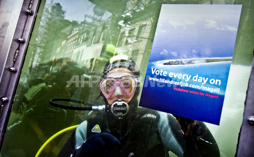 【3月17日 AFP】オランダのアムステルダム(Amsterdam)で16日、「世界一素晴らしい仕事」の候補者50人に選ばれたMagali Heubergerさん(25)が、路上に設置された水槽に潜水して投票を呼びかけた。