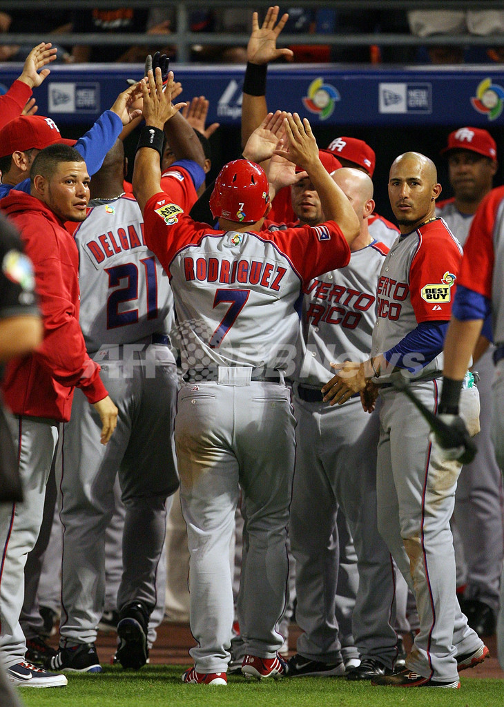 2大会連続での2次ラウンド敗退まであと二死と追い込まれた米国は9回裏、デビット・ライト(David Wright)が右翼へ2点適時打を放ち、劇的な逆転勝利でプエルトリコを敗退に追い込んだ。(c)AFP