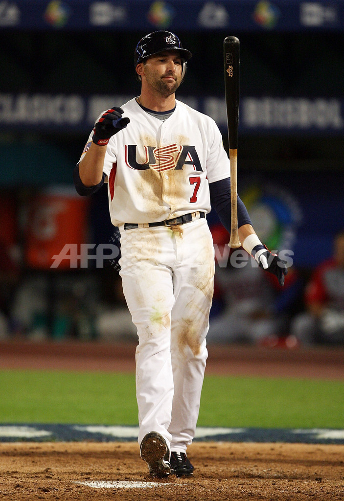 2大会連続での2次ラウンド敗退まであと二死と追い込まれた米国は9回裏、デビット・ライト(David Wright)が右翼へ2点適時打を放ち、劇的な逆転勝利でプエルトリコを敗退に追い込んだ。(c)AFP