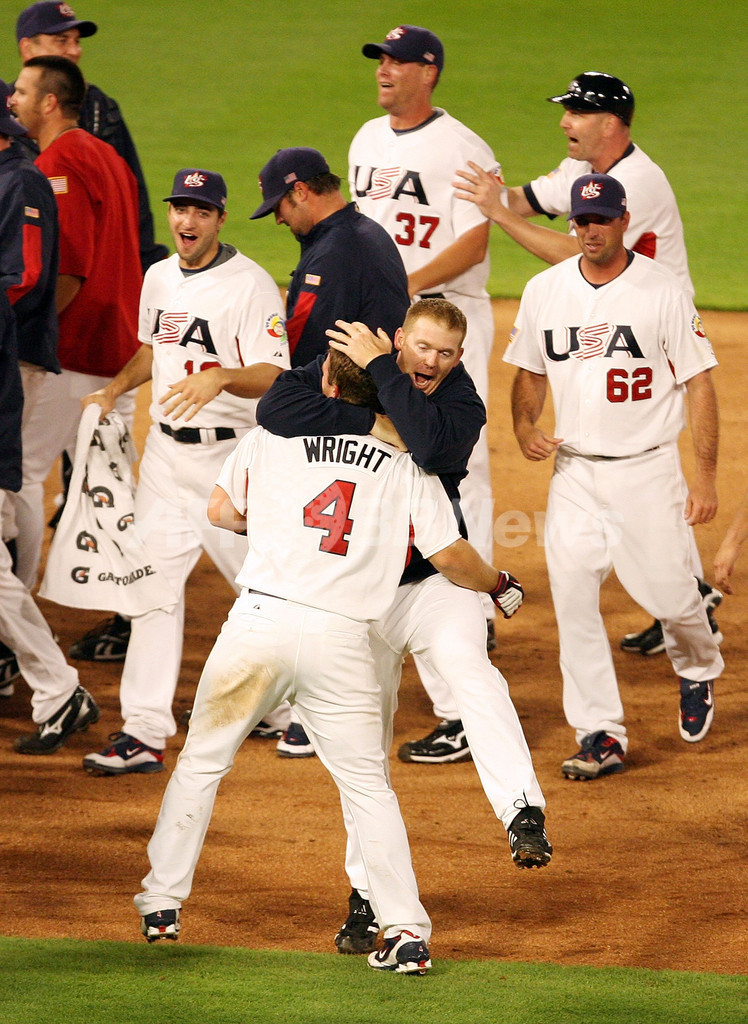 2大会連続での2次ラウンド敗退まであと二死と追い込まれた米国は9回裏、デビット・ライト(David Wright)が右翼へ2点適時打を放ち、劇的な逆転勝利でプエルトリコを敗退に追い込んだ。(c)AFP