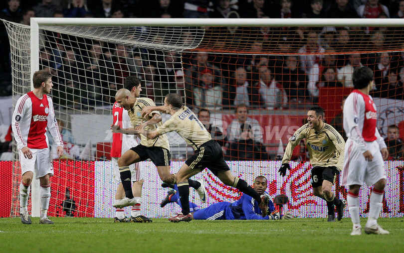 スポーツ サッカー オリンピック・マルセイユ 延長戦を制し準々決勝へ 2009年3月19日 7:56 発信地:アムステルダム/オランダ [ ヨーロッパ オランダ ] このニュースをシェア ‹ › ❮ 1/6 ❯ 延長後半4分に決勝点を挙げて歓喜するオリンピック・マルセイユのタイロン・メアーズ(%%Tyrone Mears%%)。(2009年3月18日撮影)(c)AFP/ANP/OLAF KRAAK 画像作成中 ! 【3月19日 AFP】サッカーUEFA杯2008-09(UEFA Cup 2008-09)決勝トーナメント2回戦、アヤックス(Ajax)対オリンピック・マルセイユ(Olympique de Marseille)第2戦。試合はアヤックスが2-1で勝利するも、2試合合計スコアが3-3となり迎えた延長戦で決勝点を挙げたマルセイユが準々決勝進出を決めた。(c)AFP サッカー 一覧へ> メディア・報道関係・法人の方向け 写真・動画 購入のお問合せ>