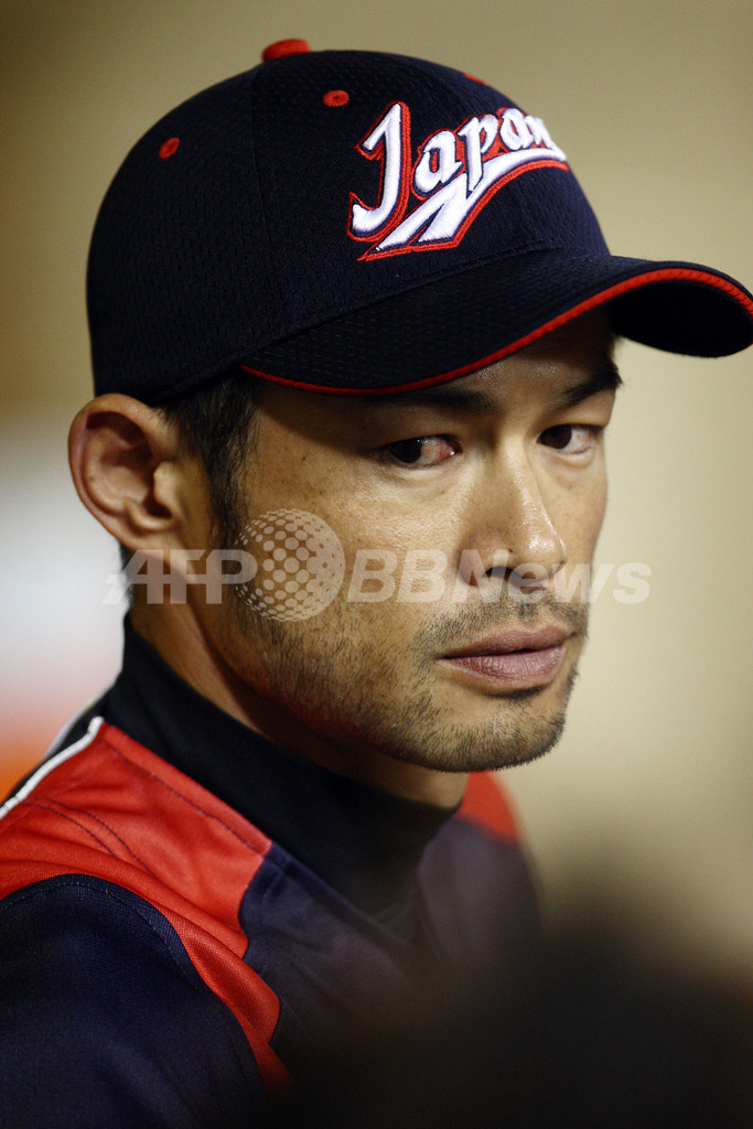 米大リーグ(MLB)シアトル・マリナーズ(Seattle Mariners)のイチロー(Ichiro Suzuki)は、2次ラウンドでは12打数無安打で内野を越えた打球がわずかに1つと悲惨な状況にあったが、第4打席で叩きつけた打球が一塁手の頭上を破りスランプを脱すると、9回には三塁打を放ち、青木の適時打で5点目の本塁を踏んだ。(c)AFP/Jim Slater