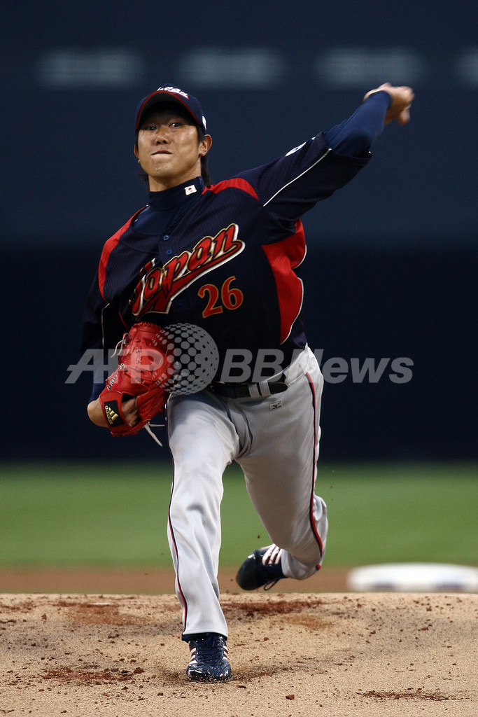 なお、4回に村田修一(Shuichi Murata)が右ふとももを痛めたため、日本は米国との準決勝へ向けて広島東洋カープ(Hiroshima Toyo Carp)の栗原健太(Kenta Kurihara)を追加招集している。(c)AFP/Jim Slater