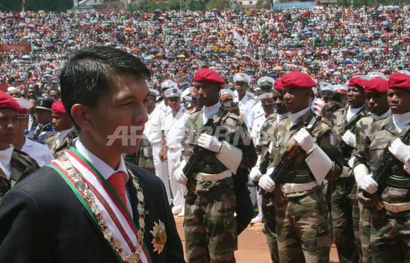 【3月22日 AFP】(写真追加)マダガスカルの首都アンタナナリボ(Antananarivo)の前市長で元ディスクジョッキーのアンドレイ・ラジョエリナ(Andry Rajoelina)氏(34)は21日、同国の暫定大統領に就任した。
