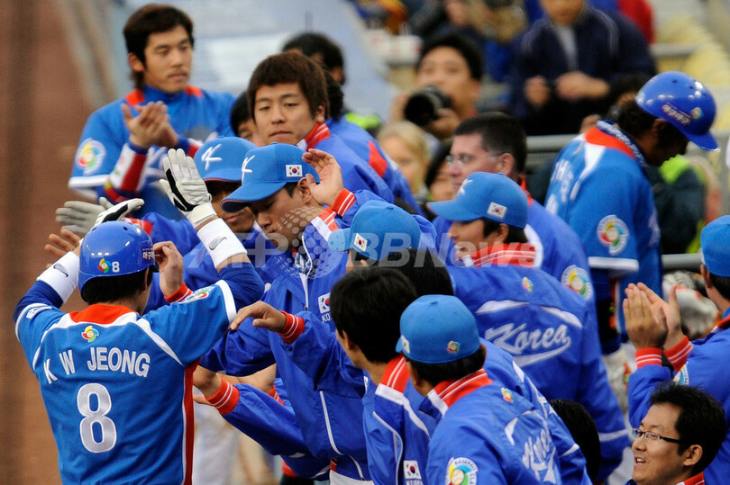 韓国は、初回にチーム唯一のメジャーリーガー、秋信守(Shin-Soo Choo、チュ・シンス)の3点本塁打などで5点を奪うと、2回には金泰均(Tae-Kyun Kim、キム・テギュン)の2点本塁打で追加点を挙げ、先発で登板したシアトル・マリナーズ(Seattle Mariners)のカルロス・シルバ(Carlos Silva)から7点を奪った。
