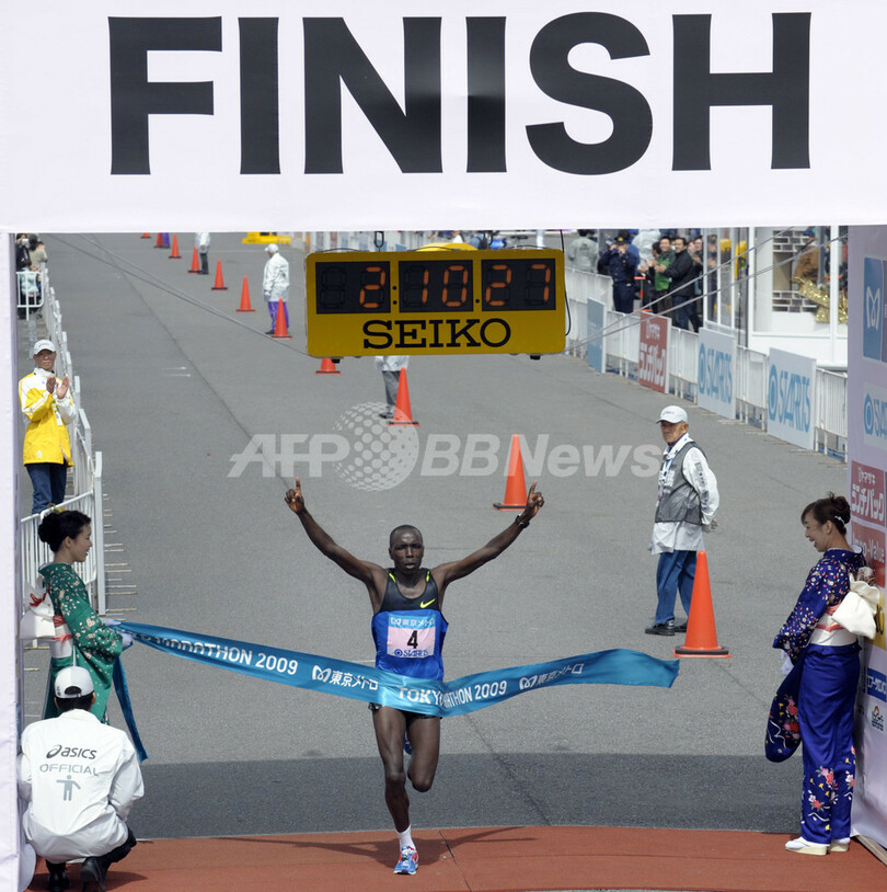 【3月22日 AFP】(写真追加)東京マラソン2009(Tokyo Marathon 2009)。男子はケニアのサリム・キプサング(Salim Kipsang)が、2時間10分27秒で優勝した。