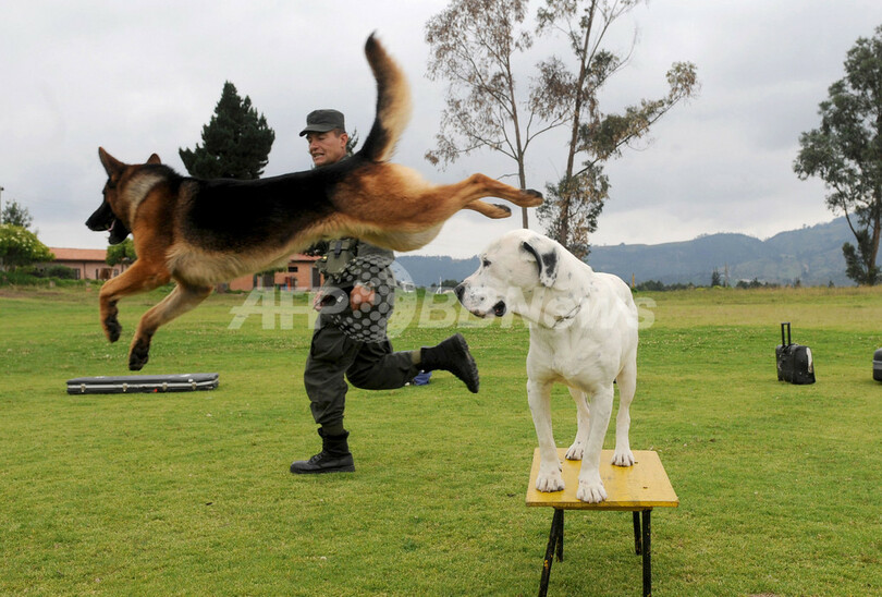 【3月23日 AFP】コロンビア・クンディナマルカ(Cundinamarca)州Facatativaで19日、中南米7か国の警察官と警察犬が集合し、コロンビア警察による講習と警察犬訓練が行われた。参加したのはベネズエラ、ブラジル、ペルー、ボリビア、ドミニカ共和国、エクアドルの警察官と警察犬たちで、コロンビアの警察犬訓練士から麻薬探知、遭難者の捜索、人命救助、違法外貨の摘発、爆発物探知についての講習を受けた後、警察犬が様々な技能を披露した。(c)AFP