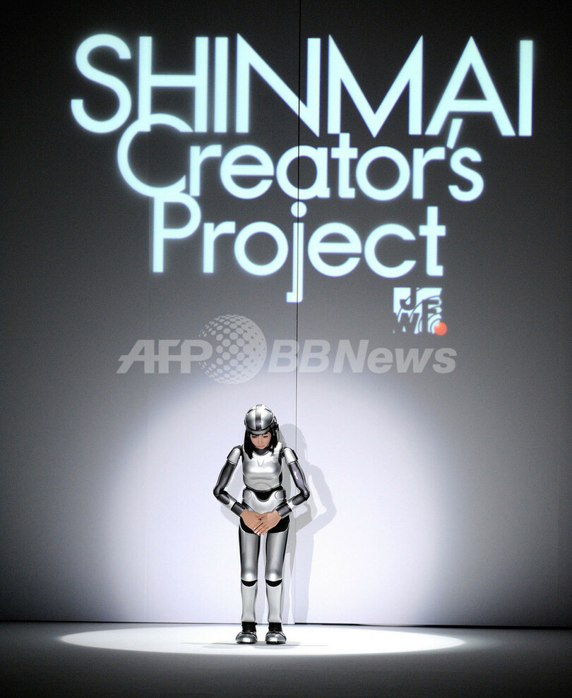 政府系研究機関の産業技術総合研究所(産総研、AIST)が開発したサイバネティックヒューマンは、身長158センチメートル、体重43キログラムで、身体には42個のモーターと複数のセンサーが組み込まれており、人間の動きをまねることができる。(c)AFP