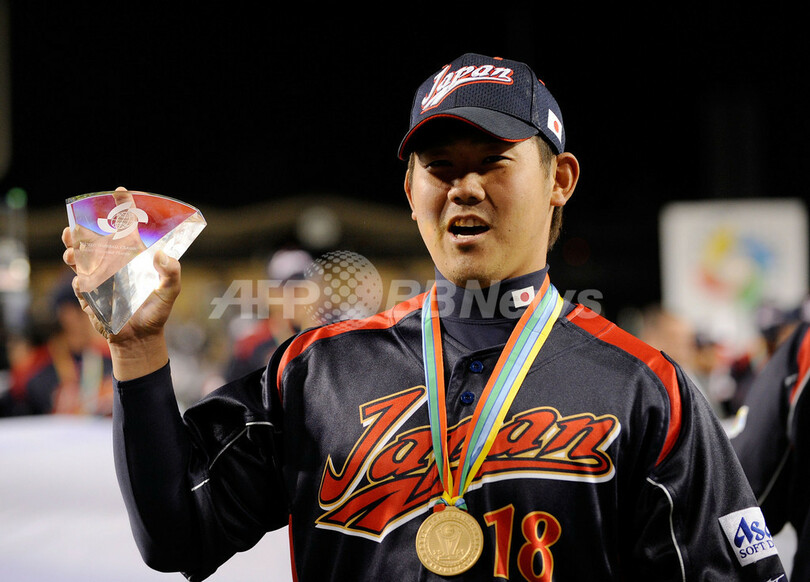大会最優秀選手には、22日に行われた米国との準決勝で勝利投手になるなど、今大会3勝0敗で防御率2.45の成績を収めた米大リーグ(MLB)ボストン・レッドソックス(Boston Red Sox)の松坂大輔(Daisuke Matsuzaka)が2大会連続で選出された。(c)AFP/Jim Slater